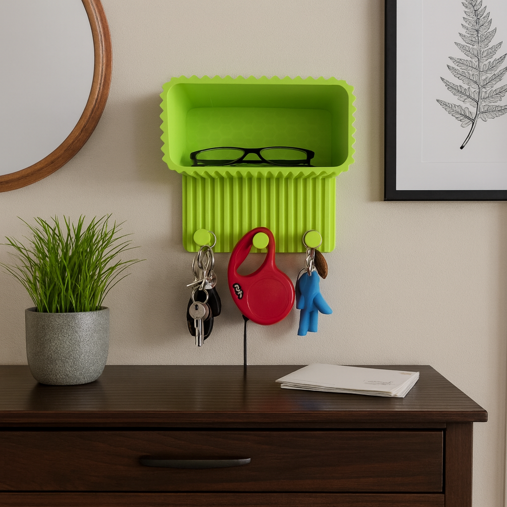 Crafted from durable, lightweight material and 3D printed in Australia, this shelf combines a sleek, space-saving design with everyday practicality. Mount it by your front door, office, or bedroom to keep your daily grab-and-go items neatly in one spot.