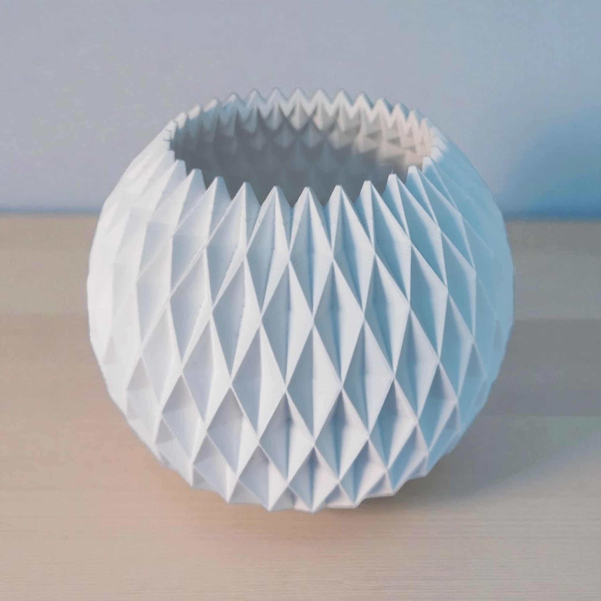 Add a touch of modern elegance to your kitchen or living space with this 3D printed geometric succulent planter. Featuring a beautifully faceted diamond texture, its clean white finish reflects light and shadow for a stunning sculptural look from every angle.