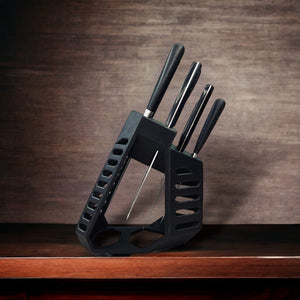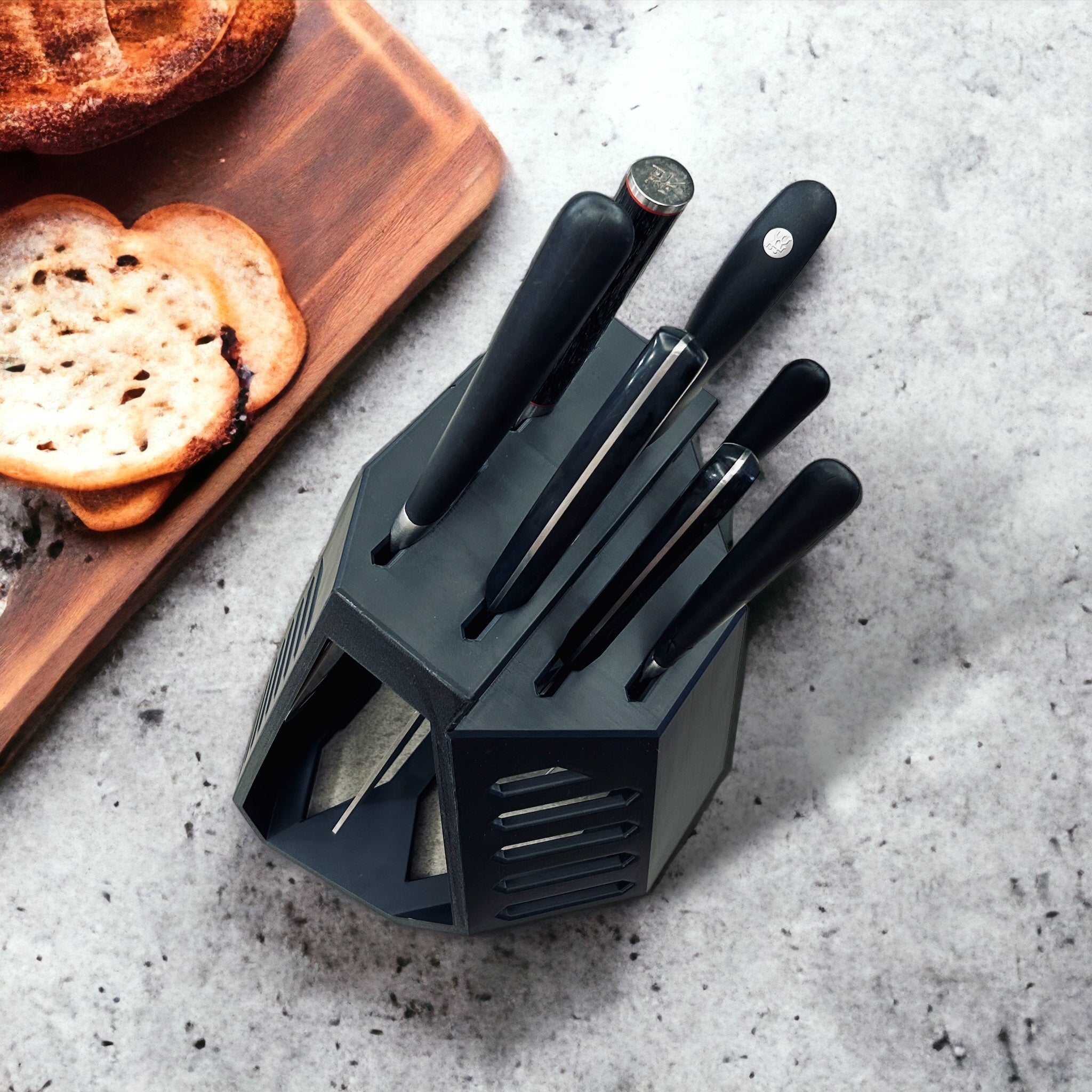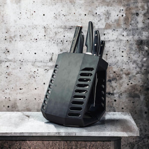Introducing our OBSIDIAN knife block – a true gem of kitchen organization and style. This sleek and sophisticated knife block will ensure your knives stay dry and are stored safely within arm's reach.