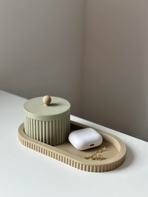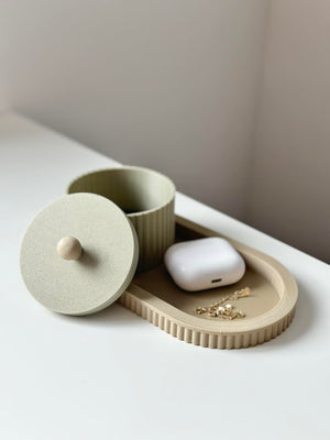 Elevate your space with Royal, a charming minimalist set featuring a sleek tray paired with a petite storage dose. Perfect for holding jewelry, keys, tea bags, or desk essentials, this duo blends style and practicality in one compact design.