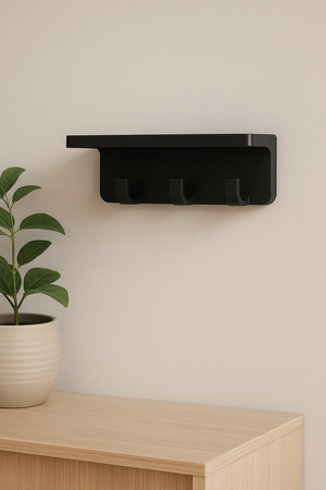 This minimalist design blends function and style: three sturdy 3D-printed hooks hold keys, lanyards, or bags, while the slim top shelf is perfect for your wallet, sunglasses, or everyday carry.